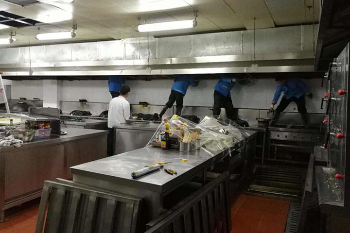 二、酒店、學校、公司食堂清洗油煙機、油煙管道,更換油煙管道、清洗水池等。 。